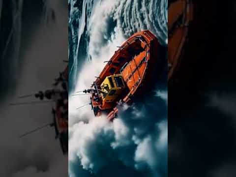 Barco piloto e Navios Tempestade Ondas Gigantes no Oceano Atlântico