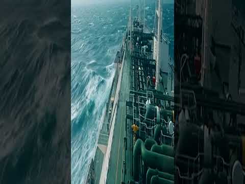 Mar Encrespado Navio Carga Líquida Recebendo Ondas Laterais Monstruosas ...