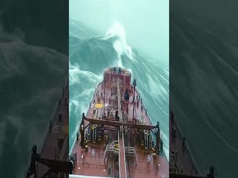 Oceano Bravio Navio de Carga Líquida Assolado por Grandes Ondas e Mar Ag...