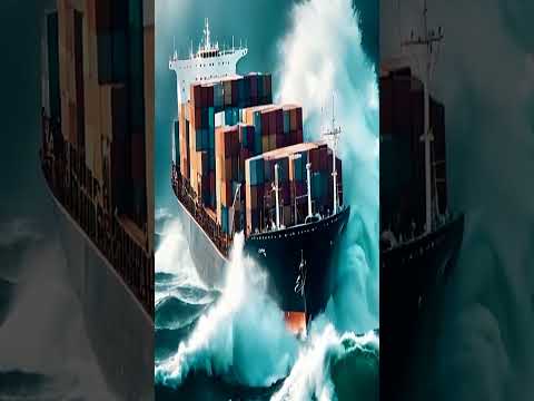 Navios Containers Abraçados por Grandes Ondas do Mar durante Tempestade ...